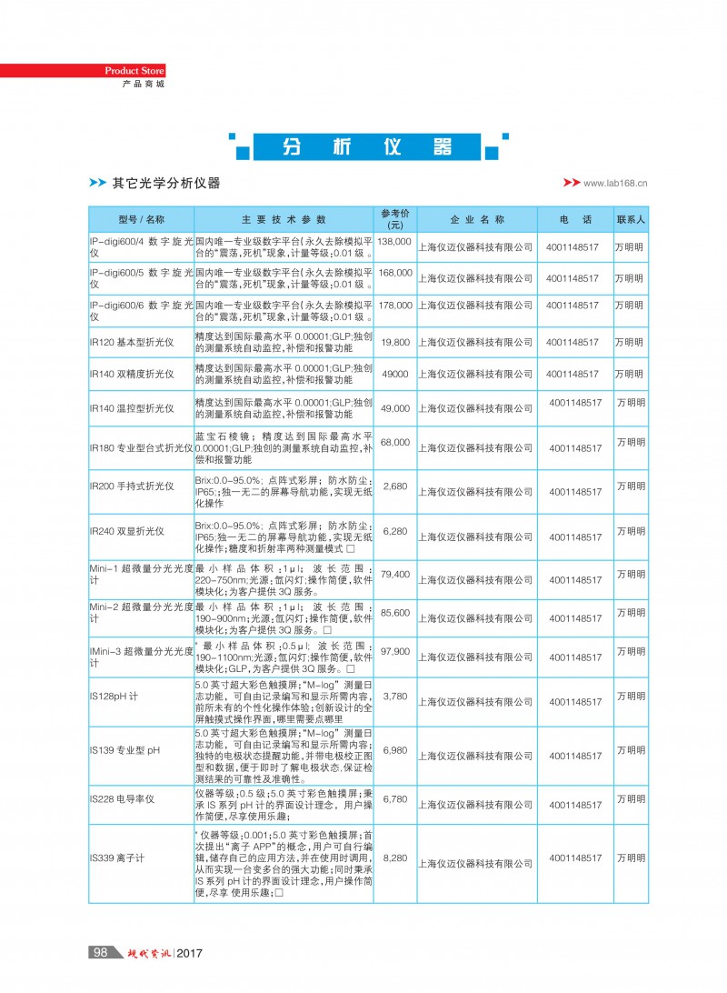 10、2017年元月【現(xiàn)代資訊】現(xiàn)代實驗室裝備網(wǎng)PC站手機(jī)全新改版上線http://m.Lab168.cn); 紙媒、網(wǎng)站與移動全方位推廣。