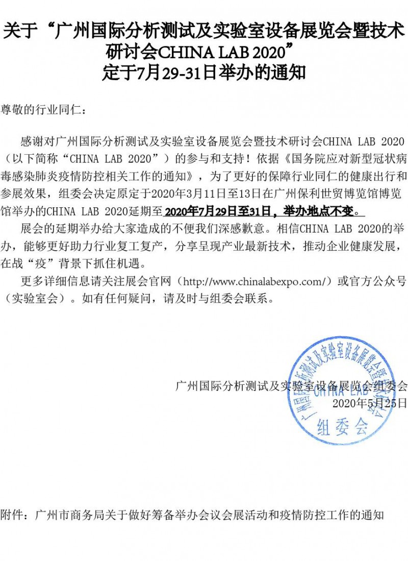 廣州國際分析測試及實驗室設備展覽會暨技術研討會(CHINA LAB 2020)