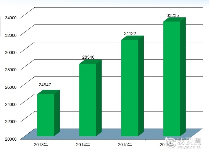 從出報(bào)告的數(shù)量來看,全行業(yè)2013年對(duì)社會(huì)出具各類檢驗(yàn)檢測報(bào)告是2.83億份,到2016年到了3.56億份,平均每天檢驗(yàn)檢測行業(yè)對(duì)社會(huì)出具近10萬份報(bào)告,所以我們這個(gè)行業(yè)對(duì)社會(huì)的貢獻(xiàn)和影響是非常大的。從儀器設(shè)備來看,2013年全行業(yè)擁有大型儀器設(shè)備是328萬臺(tái)套,2016年增長到了526萬多臺(tái)套,儀器設(shè)備資源總量也在不斷地增加。