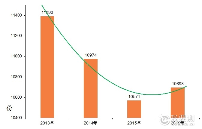 再從另外一個(gè)數(shù)據(jù):平均每年每個(gè)實(shí)驗(yàn)室對(duì)外出具檢驗(yàn)檢測報(bào)告的數(shù)量來看,近幾年大的趨勢(shì)是下降的,這說明一方面我國經(jīng)濟(jì)新常態(tài)下,實(shí)體經(jīng)濟(jì)發(fā)展不理想,也會(huì)影響到檢驗(yàn)檢測行業(yè)的發(fā)展;另一方面,也說明目前檢驗(yàn)檢測行業(yè)機(jī)構(gòu)數(shù)量擴(kuò)張過快,但檢驗(yàn)檢測市場總量增長沒有那么大,所以每家機(jī)構(gòu)分割到的蛋糕比原來小了。從這些數(shù)據(jù)也可以推斷出,今后檢驗(yàn)檢測市場的競爭會(huì)更加激烈,生存壓力會(huì)更大更難。