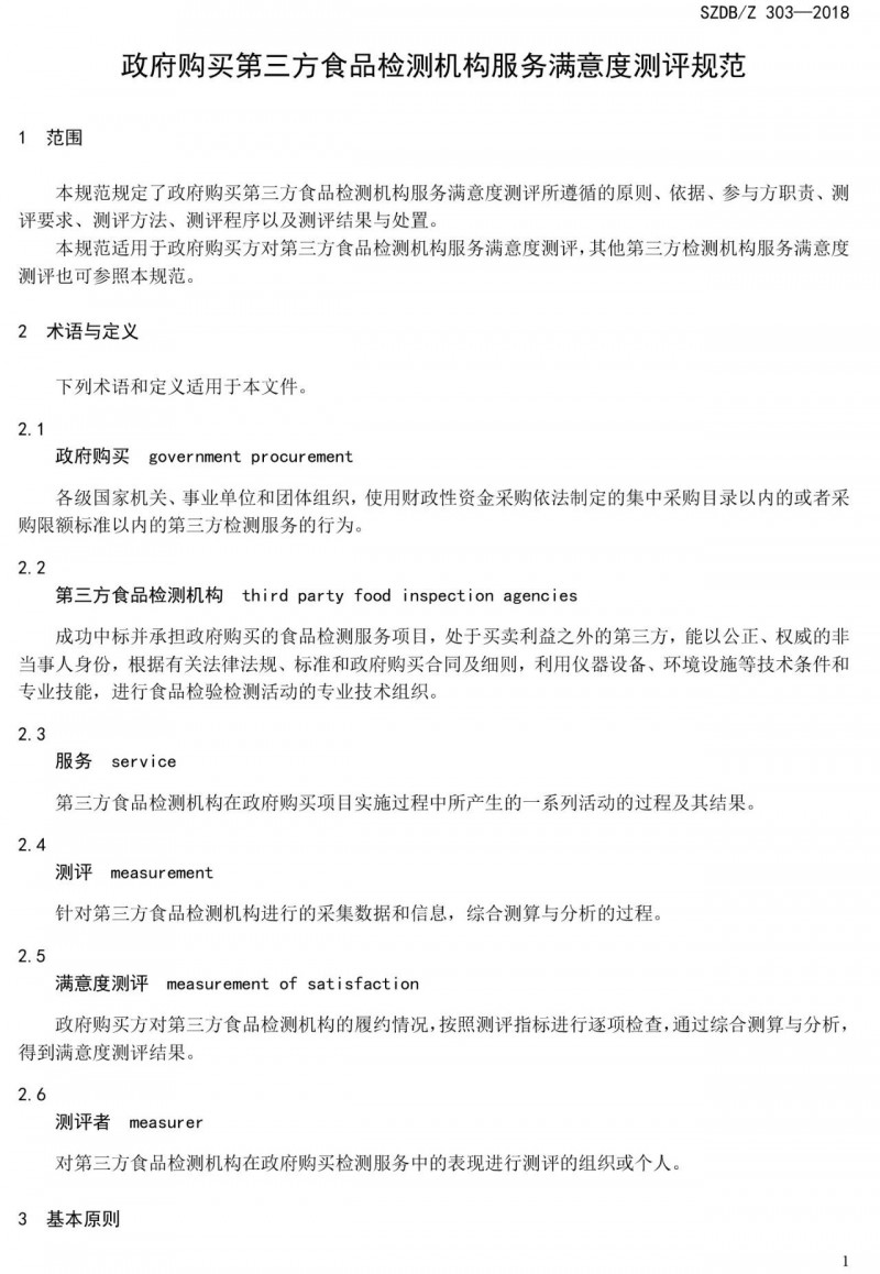 該規范規定了政府購買第三方食品檢測機構服務滿意度測評所遵循的原則、依據、參與方職責、測評要求、測評方法、測評程序以及測評結果與處置。該規范要求政府購買方和測評者有效實施滿意度測評活動,使其能夠準確反映第三方食品檢測機構服務的真實水平,查找出實際問題。