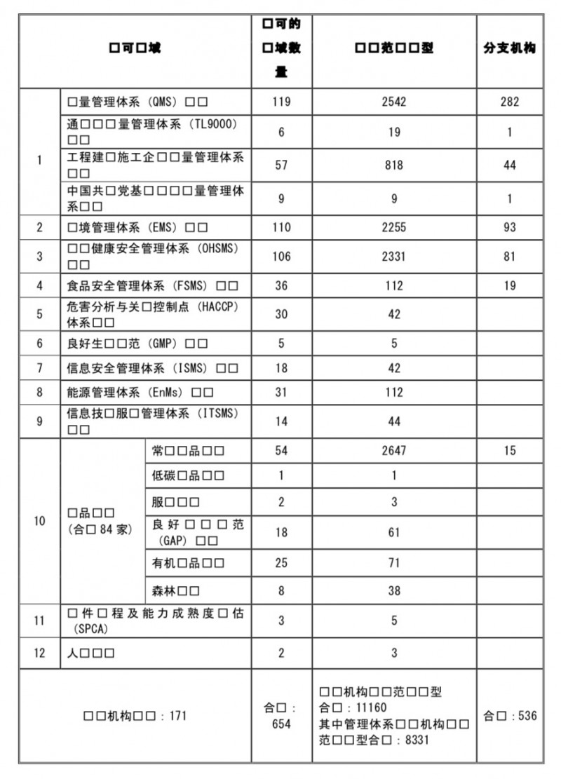 具體而言,累計認可各類認證機構(gòu)171家,認證機構(gòu)領(lǐng)域總計654個,涉及業(yè)務(wù)范圍類型11160個;累計認可實驗室9370家,其中檢測實驗室7817家、校準實驗室1075家、醫(yī)學(xué)實驗室309家、生物安全實驗室81家、標(biāo)準物質(zhì)生產(chǎn)者19家、能力驗證提供者69家;累計認可檢驗機構(gòu)527家。