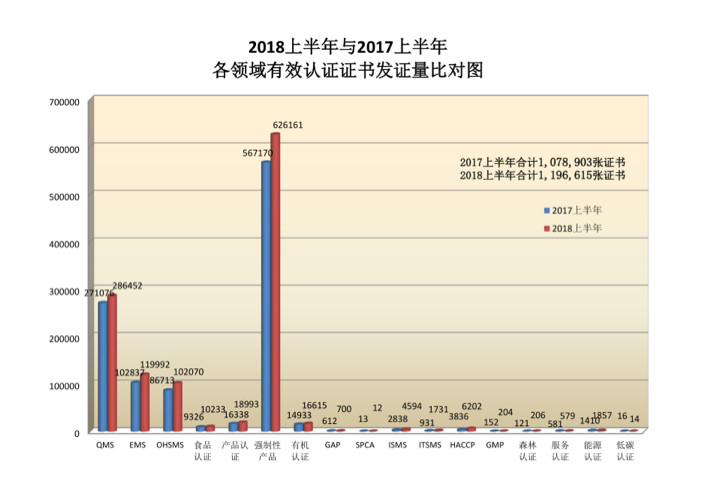 4.各領(lǐng)域認證證書發(fā)證量比對圖(2018 上半年與2017 年底)