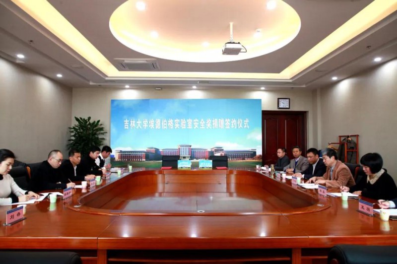 儀式上,校企雙方在友好愉快的氛圍中簡要介紹了各自的基本情況,對當前高校實驗室安全現狀交換了看法。楊勇董事長介紹了捐資設立“吉林大學埃德伯格實驗室安全獎”的初衷,并表達了今后希望繼續展開多方位合作的意向。雙方就該獎項評選獎勵辦法中的細節進行了認真的討論。而后,由楊勇董事長與尹彪副處長分別代表雙方簽訂了捐贈協議。
