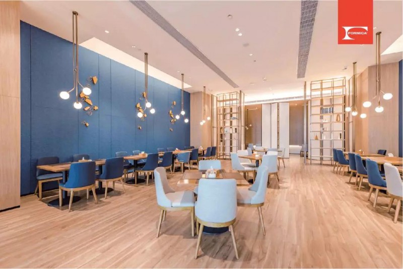“功能性和設計感一直是富美家®品牌的核心理念”,富美家®火立克™+作為一種表面裝飾材料,有多樣化色、木紋、及細膩的大理石等紋理的選擇,不管是運用在酒店還是餐廳都能提升整體環境的競爭力和客戶體驗感,并且能完美結合品牌的風格理念,契合品牌的整體設計。