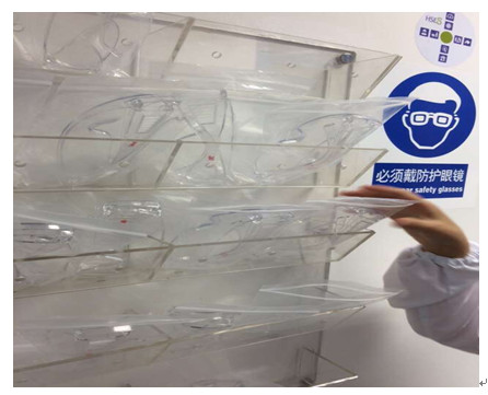 又比如,必需物品,擺放顯眼易得,像護目鏡,我們也有,但是若不容易找到不僅浪費時間,我們可能因為沒時間找,就不佩戴進行實驗,還容易產生事故。就近放在實驗室,用完也方便歸位。