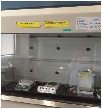 試驗區域根據用途進行劃分,標識清楚且明顯,每扇通風廚玻璃上都有警示和提示標識。