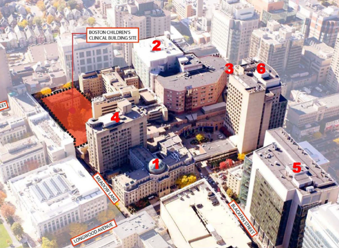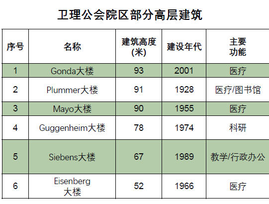 梅奧醫學中心將單獨的一棟建筑用于科研,即圖中標記為4號的Guggenheim大樓,有24個核心實驗室,建筑面積9.55萬平方米。波士頓兒童醫院也有非常多實驗室,它的第5、6棟也是以科研為主的。