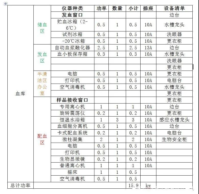 1. 配血區儀器:血液輻照儀、進口全自動配血儀、全自動化學發光儀等設備儀器。