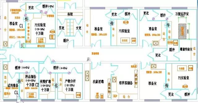 PCR實驗室:分為試劑準備室、樣品制備室、擴增分析室,各實驗室前要有緩沖間,PCR總面積不宜小于60㎡。