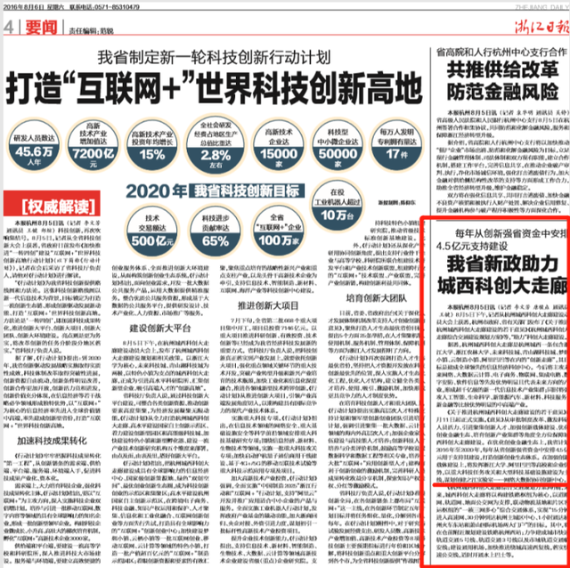 涌金君查閱發現,浙江第一個有著象征意義的國家實驗室“預備隊員”——之江實驗室,首次出現在《浙江日報》報道中是在2016年8月。當時,浙江對外發布實施《關于推進杭州城西科創大走廊建設的若干意見》,其中最受外界關注的一條就是:謀劃創建之江實驗室——網絡大數據協同創新中心。