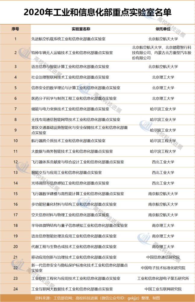 日前,工信部印發通知(工信部科〔2021〕22號),正式公布2020年工信部重點實驗室名單。根據名單顯示,北京航空航天大學等7所工信部直屬高校獲批建設20個部級重點實驗室。