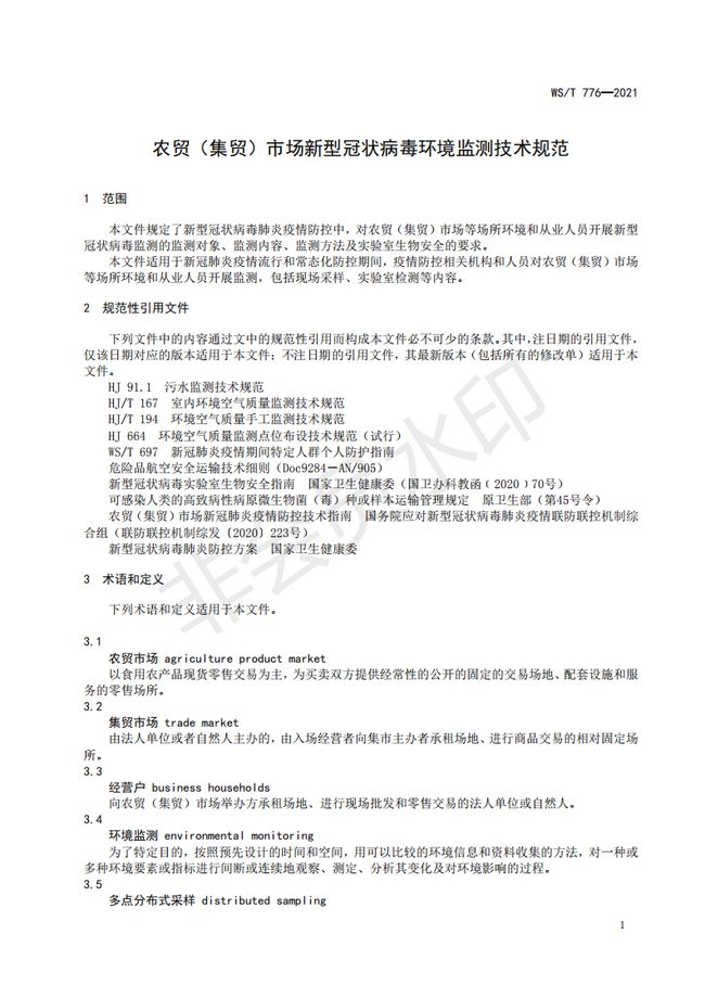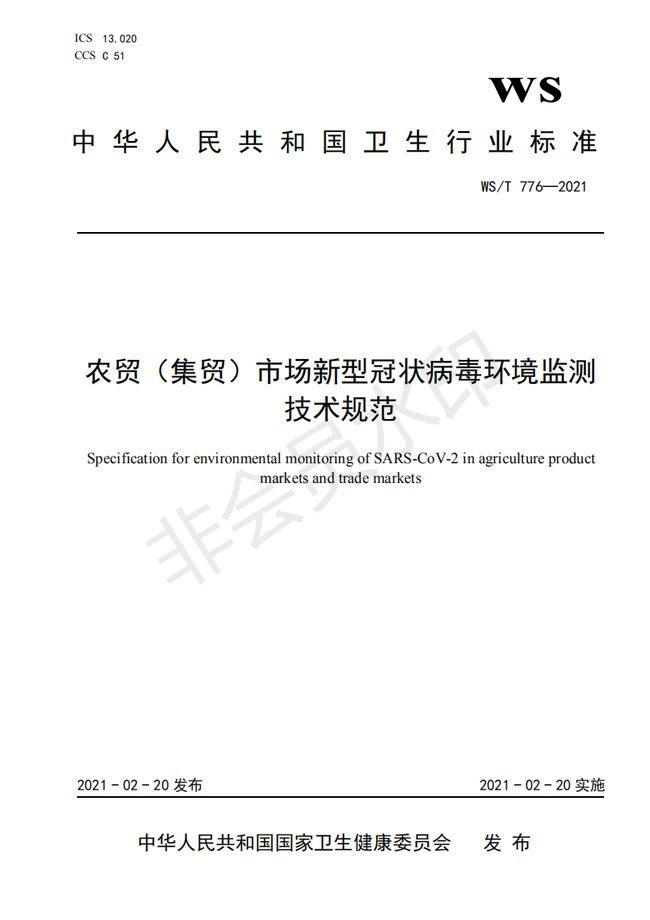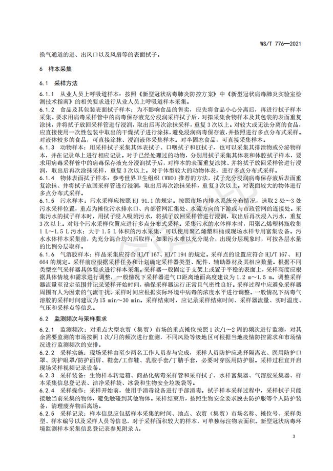 《農貿(集貿)市場新型冠狀病毒環境監測技術規范》
