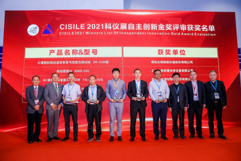 “CISILE2021科儀展自主創(chuàng)新金獎”經(jīng)過長達數(shù)月的遴選和評審后,獲獎名單于2021年5月10日在北京國家會議中心正式公布,并現(xiàn)場向獲獎單位頒發(fā)證書獎杯。“CISILE2021科儀展自主創(chuàng)新金獎”獲獎設(shè)備涵蓋了電子顯微鏡、光譜儀、力學(xué)特性分析儀、熒光光度計、口罩顆粒物過濾率及氣流阻力測試儀、密度儀、金屬3D打印件、有機玻璃構(gòu)件整體成型專用加熱爐、尿典分析儀、重金屬離子分析儀、土壤樣品制備系統(tǒng)、兩蟲檢測自動識別系統(tǒng)、測汞儀、超低溫冷阱、數(shù)碼顯微無線互動系統(tǒng)、遠程孢子自動捕捉儀等細分領(lǐng)域,獲獎單位合計22家。