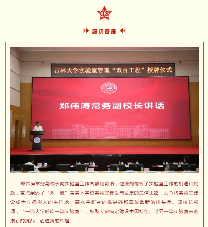 核心提示:吉林大學(xué)實(shí)驗(yàn)室評(píng)價(jià)評(píng)估工作總結(jié)匯報(bào)會(huì)暨實(shí)驗(yàn)室管理雙百工程授牌儀式