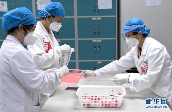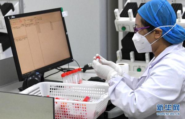 疫情發生后,該機構組建了600多人的檢測隊伍,投入300余臺儀器設備,實現24小時人機不間斷檢測。通過流程優化、技術整合和信息化升級,中心每日可檢測20多萬管,按10:1的混檢比例,可篩檢200多萬人份。新華社記者 李安 攝