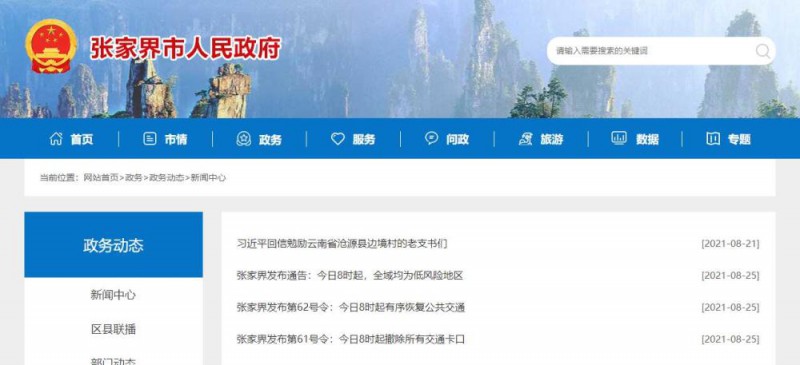 據(jù)張家界市政府網(wǎng)站消息,8月25日,張家界市新型冠狀病毒感染肺炎疫情防控工作指揮部發(fā)布《關(guān)于調(diào)整張家界市部分街道風(fēng)險等級的通告》稱,根據(jù)國家和省關(guān)于應(yīng)對新冠疫情分區(qū)分級防控的工作要求,經(jīng)專家組綜合評估研判,自2021年8月25日8時起,將張家界市永定區(qū)永定街道、崇文街道、南莊坪街道、官黎坪街道、大庸橋街道、 陽湖坪街道,從中風(fēng)險地區(qū)調(diào)整為低風(fēng)險地區(qū)。