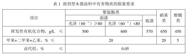 51.7.2 溶劑型木器涂料應符合 HJ/T 414 要求,其中揮發性有機化合物、甲苯、二甲苯、乙苯、鹵代烴限量應符合表1要求。